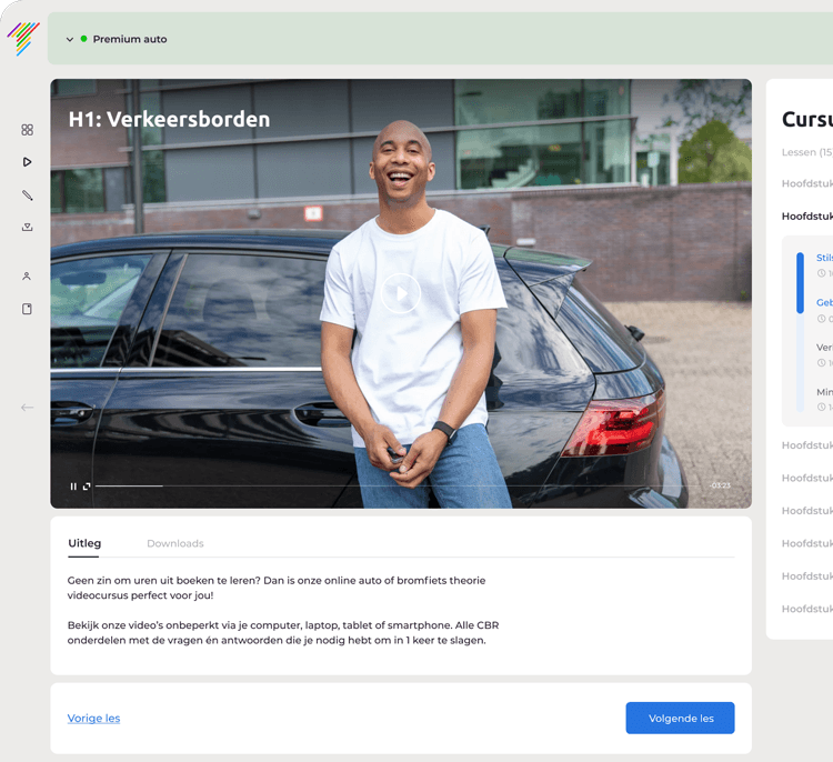 Bekijk onze video’s onbeperkt via je computer, laptop, tablet of smartphone. Alle CBR onderdelen met de vragen én antwoorden die je nodig hebt om in 1 keer te slagen